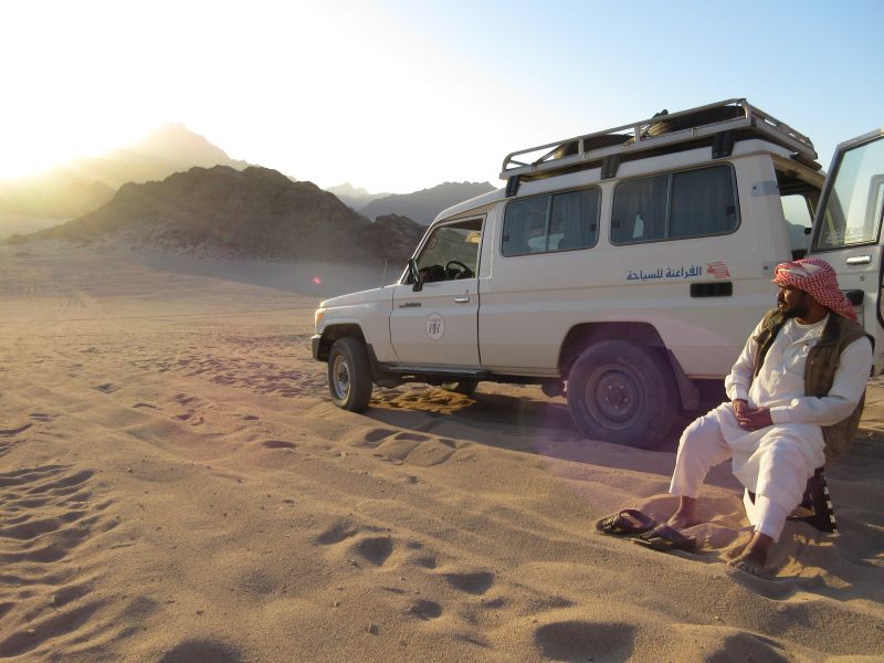 De ‘woestijnvos’ is de bijnaam van de gids die ons naar een oase loodst in de buurt van een Bedoeïenendorpje in de woestijn. Dankzij een ondergrondse bron in een ravijn wordt het dorp, na de bouw van een put, voorzien van water. ‘s Avonds krijgen we heerlijke gerechten voorgeschoteld. Maar eerst zijn we getuige van een prachtige zonsondergang.