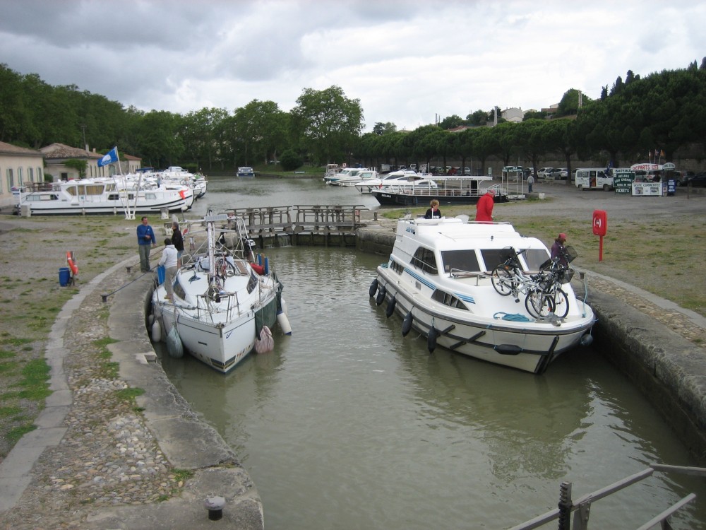 Maandag 24.6, Carcasonne. Qi qong bij het tentje. Spieren losgooien en opwarmen. Van de Camping de la Cité tot aan het station, langs de sluizen van de Canal du Midi, zit het eerste volle uur met de rugzak erop. Hij leunt goed op de heupen. Het is nog wat klooien met de riemen. Dan vind ik het weer te strak, dan zit hij weer te los en gaat hij waggelen. Het is duidelijk dat we elkaar niet meer gewend zijn. Maar het voelt goed. 14 kilo is haalbaar. Althans, voor dit eerste uur. Tijdens de volgende dagen zal blijken hoe sterk, of slap, ik ben. Zullen er blaren komen? Verzuurde spieren? Het is afwachten. En waakzaam blijven. Volledig ontspannen ben ik nog niet. Er is een constante denker en observator in mijn hoofd. Die wil alles analyseren. Zou ik daar zitten of hier blijven staan? Zou ik daar een appel kopen of hier een banaan? Is het mijn perfectionist? Wat voor een ‘ik’ is deze persona? Niet mijn zwerver. Mijn zwerver zat zojuist in de stationshal op de grond haar broekspijpen in te korten met een naald en stukje draad. Dit maalt niet om een bankje of stuk fruit. Die doet wat moet en doet dat goed. De trein staat klaar op perron A. Bestemming Quillan. Reistijd 1 uur, kostprijs 1 euro.