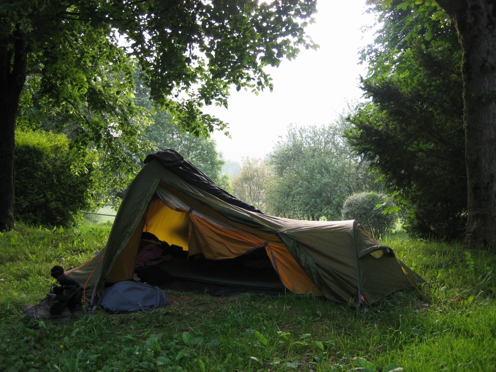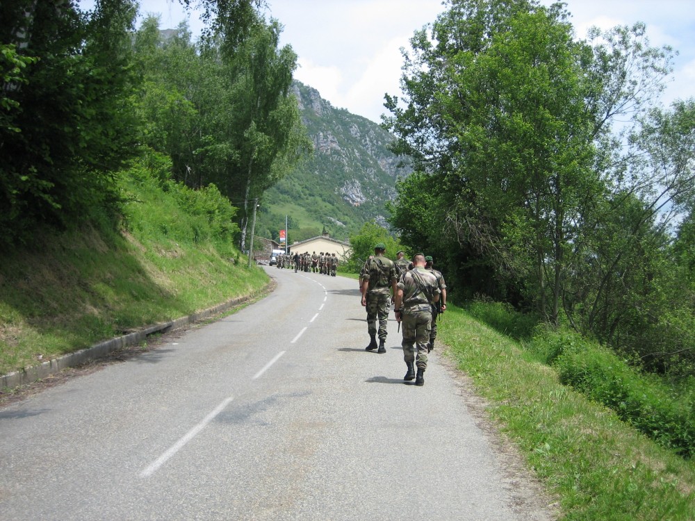 Donderdag, 27.6, Montségur. Aankomst in Montségur. Ik begeef me naar de snackbar die gelukkig ook een koel pintje heeft staan. Heineken? Ik dacht het niet. Een Kronenbourg dan maar. Dat doet deugd. Ik klink op de kleine overwinning. Ik wilde te voet Montségur bereiken en het is me gelukt. Ik raak aan de praat met het plaatselijk ontvangstcomité in de vorm van een dikbuikige goeierd van rond de zestig, schat ik. Alain. Hij nodigt me uit aan de gastvrije grote tafel voor het avondmaal. Wanneer ik terugkeer naar het tentje, wordt het kampeerveldje bewaakt door het Vreemdelingenlegioen. Ik raak aan de praat met een gewapende khaki. Ze zijn op oefening. Een beetje een vreemd zicht hier in dit kleine dorpje, maar goed. Het heeft wel iets, een rij soldaten – full combat – slapend op de grond onder een zeiltje. Naast mijn tent.