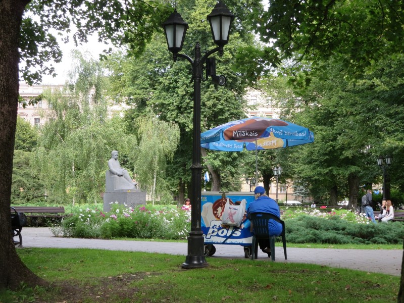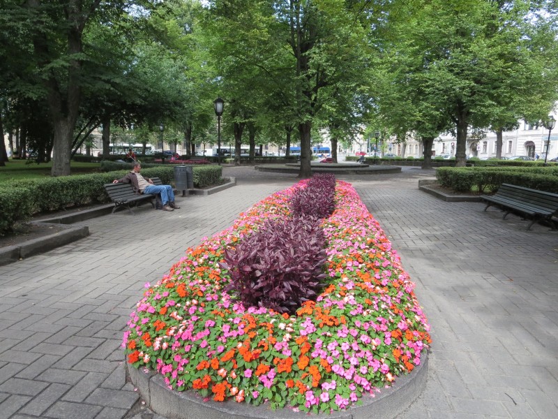 Riga is ook groen. Groen als in ecologisch en bio. Het wemelt van de labels organic, slow, natuurlijk en biologisch. Of het nu gaat om een broodje gezond of een stuk handgemaakte zeep. Maar het is ook een groene stad, een stad van parken en perken. De Let houdt van zijn bloemen. Een onpaar aantal in een boeket voor elke gelegenheid. Omdat je iemand ophaalt aan de luchthaven, omdat je gaat lunchen met een vriendin, omdat de poes van de buurvrouw jarig is, of zomaar. Bij elke kiosk vind je wel een bloemenvrouwtje. Ook bij de kerkhoven van Riga. De graven liggen kriskras in een park, omringd door bomen en planten, soms bijna overwoekerd. Vaak met een bankje naast de steen, een rustplek voor zij die achterbleven.