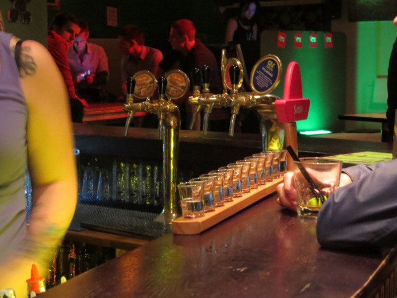 De feestneuzen komen hier voor een wilde vrijgezellennacht, een laatste uitspatting voor het huwelijksbootje. Hier in de sex capital of Europe wacht hen een erotisch nachtbraken dat wij vooral in advertenties en waarschuwingen geopenbaard zagen. Allicht zijn er wijken en anonieme gevels waarachter dit soort orgieën zich ontplooien, maar we hebben er niet veel van gemerkt. Dat er een uitbundig nachtleven is, alla, dat merk je al snel aan de eindeloze lijst cocktails, de shot bars met schnaps per strekkende meter, de stoere barmannen en beren van buitenwippers in hippe kroegen. Het feest begint niet voor de vroege uurtjes. De happy hours vullen de leemtes. Het bier vloeit rijkelijk. In de kroegen, maar ook op de vele pleintjes waar elk podium zijn toegewezen tijd heeft voor een streepje live muziek.