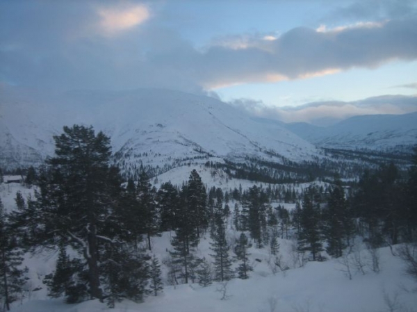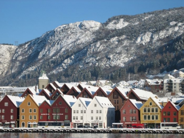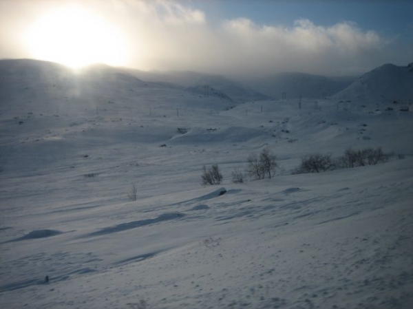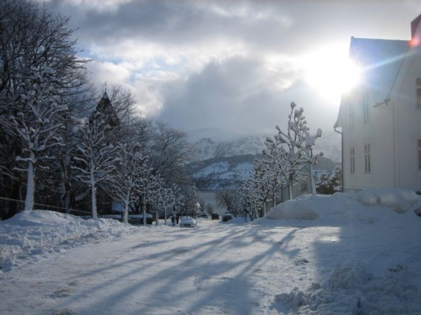 De treinrit Oslo-Bergen deed haar reputatie alle eer aan. Gedurende zeven uur glijden we comfortabel door prachtige desolate sneeuwlandschappen. Een kudde elanden in een open vlakte is lange tijd het enige teken van leven in dit afgelegen wit. Op de bomen en de daken rust een kniediep maagdelijk sneeuwtapijt. Reusachtige meren gaan gebukt onder een zwaar ijsdeken en tonen slechts hier en daar, in de barsten en scheuren van botsende ijsplaten hun ware, blauwe kleur. Dit is magisch winterwonderland. De trein houdt halte aan een onooglijk stationnetje onder de ijspegels. Een postzak belandt op het perron. Enkele passagiers stappen uit en klikken zich meteen vast in hun ski’s. Niet voor de sport, gewoon als transport. Gedachten dwarrelen in mijn hoofd als de witte vlokken rond de trein. De sneeuw en al dat wit brengen stilte en rust. Magisch winterwonderland.