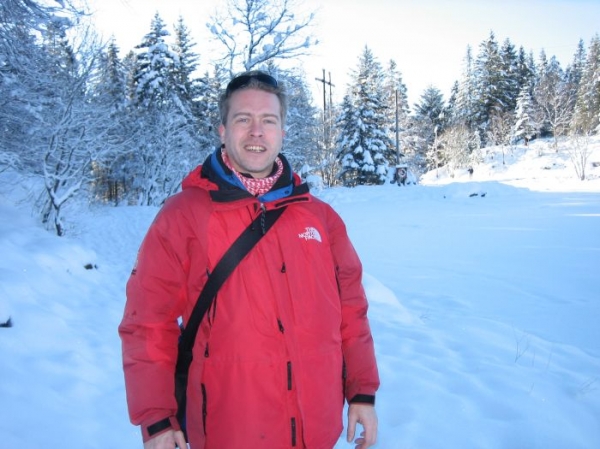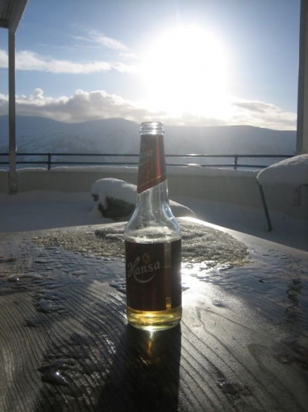 Nog later, ik thuis na een tocht door China en Mongolië en grote broer in de hangmat van de loopbaanonderbreking, kregen de plannen rond het mysterieuze eilandje een gelaat. We zouden in februari gaan, mama was ook in februari gegaan. We zouden op het eiland aan het water samen een ritueel uitvoeren. Wat dat ritueel zou worden was ons niet helemaal duidelijk. Dat zou later wel vorm krijgen. We moesten ons eerst en vooral een paar praktische vragen stellen. Kunnen we op het eiland geraken? Ook in de winter? In een Noorse Winter? De toeristische dienst van Noorwegen had nog nooit van het eiland gehoord. Sommige Noren gelukkig wel. Op Couchsurfing, een site van reizigers voor reizigers, vonden we een antwoord op onze vragen en ook onderdak hier en daar. Ik had ergens gelezen dat de treinrit Oslo-Bergen een van de mooiste treinritten in Europa is. Grote broer wist over het bestaan van de talrijke veerboten en een Jugendstilstad. En zo werd de missie een reisplan. Kort, maar krachtig. Koud en prachtig. Zo zou het zijn. Maar niet op dag één. Dag één moesten we met een slof duty free rookwaar, dat wel, maar zónder airmiles terug richting Antwerpen. Een onverwacht hevige sneeuwval en een plotse daling van het kwik had Gardemoen Lufhavn doen opschrikken. Landen in Oslo zat er niet meer in. Heel even doemde de vraag op of ons reisplan wel zo doordacht was. Wat hadden wij nou verstand van extreme klimaten? Wat wisten wij nou helemaal van dat kille noorden? Het antwoord kwam op dag twee in Oslo. Zoveel sneeuw had ik nog nooit in een stad gezien. Wel ooit op een skipiste in de Rocky Mountains, maar daar verwacht je dat ook. Het was flink koud, -10°. Ik had er maar goed aan gedaan thermisch ondergoed en waterproof laarzen in te pakken. En laagjes: truitje over een truitje over nog een trui over een dikke trui. In de wol van kop tot teen. De Visakaart bleek ook geen overbodige luxe. Een avondje uit eten, met het obligate flesje wijn en hier en daar een schnaps, kost een flinke zak Noorse duiten. Niet zo met koffie. Van de Europeanen drinken de Noren de meeste koffie per capita. Iedereen loopt met een warme beker door de koude straten. Van de Couchsurfer Thor in Molde krijgen we elk een exemplaar typisch Noors culinair erfgoed: een thermosmok die je in januari voor 100 Kronen koopt bij een keten. Tot december laat je die dan gratis bijvullen, bij de juiste keten wel te verstaan. Ook zonder die mok wordt de koffieslurper lekker in de watten gelegd: een koffie betalen en dan gratis bijvullen. Daar hoort een mierzoete pannenkoek bij.