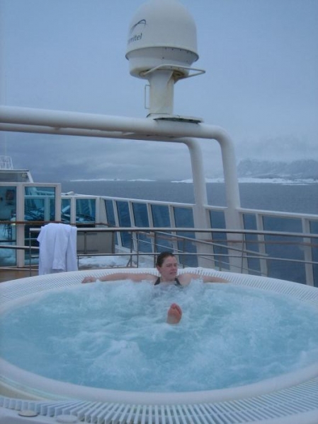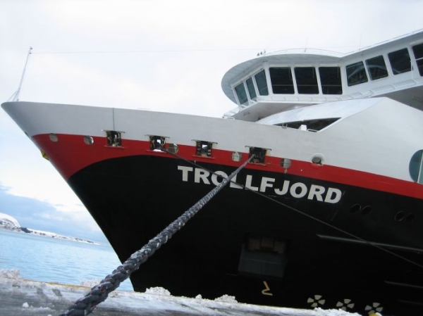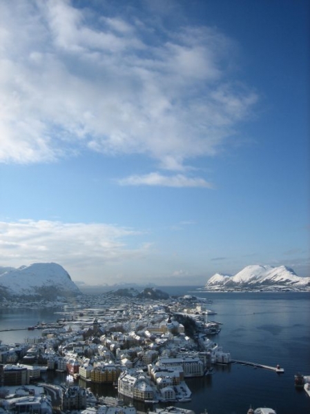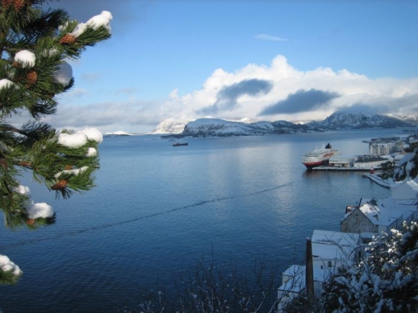 Grote broer had het goed gelezen over de talrijke veerboten. Er zijn veel Noorse veerboten die elke haven verbinden met weer een volgende, elk eilandje met het vasteland. Maar om de Hurtigruten Trollfjord nou een veerboot te noemen…De boot telt negen verdiepingen, met vasttapijt, bars, restaurants en een glanzende discodansvloer. Het is een drijvende Hilton! Kers op de taart is de sauna met zicht op de fjorden en de jacuzzi op het bovendek. Een passagier trotseert de kou en de snijdende wind voor het obligate vakantiekiekje terwijl wij lekker liggen te dobberen in een stomende kuip. Heerlijk absurd! We genieten na met een veel te dure mojito terwijl een Noorse schone “Show me the way to Amarillo” over de golven doet deinen, onze eigenste Pacific Princess. Captain Stubing loodst ons veilig door de donkere fjorden naar de Jugendstil van Ålesund.