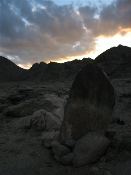 Geïnspireerd door de steen van Bram Vermeulen, heb ik tijdens een wandeling met Sjakkelien nabij Manhan, een dorpje in West-Mongolië, mijn eigenste stenen logo gelegd in een woestijn: Sarah was here! Het ego wil ook wel wat. Poekie heeft bij deze plek een vijftal steenmannetjes gemaakt, of rotswakers, of grafstenen, ik weet niet goed wat het moet voorstellen en ik wil soms zo graag dat alles het juiste woord krijgt. Poekie heeft een zware steen verlegd. Laat ik het daarbij houden. Dat is meer dan mooi genoeg.