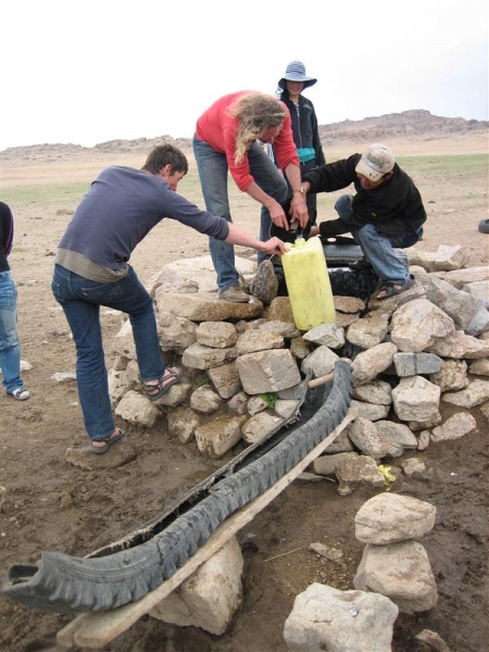 Dit concept maakt hier zo enorm deel uit van het dagelijkse leven onder de nomaden, is zo alomtegenwoordig en vanouds dat het voor de reiziger vaak resulteert in een enorm gevoel van gastvrijheid. Wanneer je halte houdt bij de nomaden om te schuilen voor een plotse regenbui of de verschroeiende Gobi middagzon, om de weg te vragen of om simpelweg even op adem te komen dan komen de melkthee , de yoghurt, de oliebollen, de wrongel en de snuiftabak al snel tevoorschijn. Plots is de vrouw des tentes druk in de weer met het poken van brandende droge yakmest in de kachel, het verzamelen van krukjes, het oppoetsen van kommetjes en lepeltjes die uit alle hoekjes en kastjes worden verzameld. Er wordt samen gesnoept, gegeten, gedronken en gerookt. De verbroedering gaat langs de maag. Er wordt ingetogen gepraat over de kudde, over de familie, over de afgelopen droogte of koude, over de huidige verkiezingen, over de staat van de wegen en over ons. Nieuwsgierige ogen geven zichzelf de kost. Waar komen wij vandaan? Wat doen wij? Er wordt vol verwachting gekeken of wij de zure yoghurt wel zullen binnenhouden. Wanneer ik mijn netjes leeg gelikte kommetje zachtjes naast de kachel, nabij de afwasplek plaats, volgt een goedkeurende glimlach. Ik ken het ritueel – een leeggelikt kommetje brengt geluk (en valt volgens mij veel waterzuiniger af te wassen). En zo word je heel even, ook al oog je nog zo anders en woon je zo ver weg, een met hen. Gewoon mensen onder elkaar rond een kacheltje in een vilten tent in een hemelsbreed landschap boordevol ruige elementen van moeder Aarde.