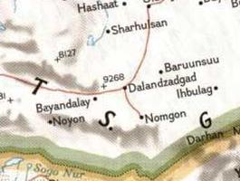 Op weg naar Bayanzag. ‘Hey, kijk! Een rennende vos!’, en ik wijs naar een snelle stip aan de vlakte. Dat had ik beter niet gedaan. Agi draait een bruuske kwartslag aan het stuur, verlaat het kiezelpad en zet de achtervolging in. Ik denk nog misschien wil hij ons de vos van dichtbij tonen. We naderen hem inderdaad met rasse schreden. Wat ik voor een natuurliefhebbend, zoologisch-curieus uitstapje hield, blijkt zich al gauw te ontpoppen tot een ware klopjacht, per jeep wel te verstaan. De jeep slipt, draait rondjes en maakt stofwolken, maar Agi laat zijn prooi niet los. Na een vijftiental minuten is het arme beest zo afgepeigerd dat het neervalt en naar adem snakt. De jeep stopt enkele meters van de sluwe sprinter. Ik denk nog nou is het welletjes geweest. Ik zou voorwaar willen uitstappen en de drommel een kommetje water en Felix hapklare brokken voorschotelen. In mij welt een diep medelijden met dit schepsel op.