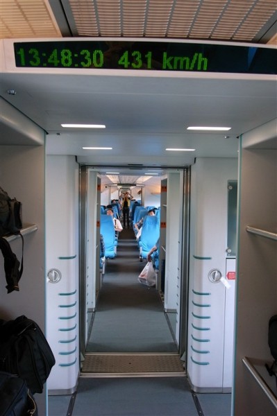 Een eerste postpakket boeken – die worden later een eerste aanzet om enkele Chinese karakters te doorgronden – en doosjes thee, souvenir van een onverwachte en prettige theeceremonie, gaat richting Antwerpen en wij gaan richting Chengdu. Daarvoor nemen we eerst de Maglev trein naar de nieuwe terminal van Sjanghai’s Pudong International Airport. Deze zwevende electromagnetische trein brengt ons aan een topsnelheid van 431 km/uur in amper zeven minuten tijd 30 km verder. Halverwege het traject kruisen we de trein richting stad. Zooeefff! Voor je beseft wat dat was, sta je met pak en zak aan de incheckbalie, samen met een groepje reddingswerkers.